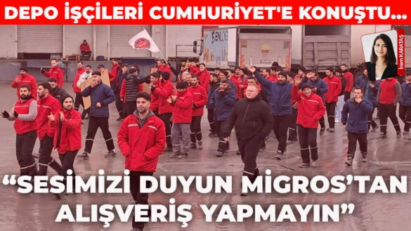 Yaşanılabilir ücret zammı talebiyle greve çıkan Migros depo işçilerinin direnişi bir haftadır sürüyor. DGD-Sen öncülüğünde, Türkiye genelinde 7 bini aşkın çalışanı ilgilendiren toplu iş sözleşmesinde uzlaşmazlıktan binlerce işçi greve çıktı. Grevin ardından 141 kişinin işten atılması tepkiye yol açtı. Cumhuriyet’e konuşan işçiler, “Migros’tan alışveriş yapmayın….